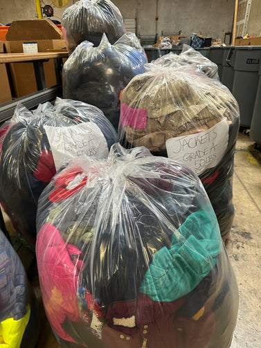 Chaquetas de grado A de todos los tamaños y tipos: para hombres, mujeres y niños. El grado A puede incluir nuevas etiquetas para usar suavemente sin imperfecciones como manchas, desgarros, decoloración, etc. Puede incluir marcas como Aeropostale, Faded Glory, Tommy Hilfiger, Patagonia, Under Armor, Calvin Klein, Old Navy y Columbia. Si la chaqueta no es una marca, todavía está de moda para revenderla. Cualquier sudadera con capucha con cremallera o suéter corto con cremallera también está incluido en las chaquetas. Disponible solo para recogida en tienda.