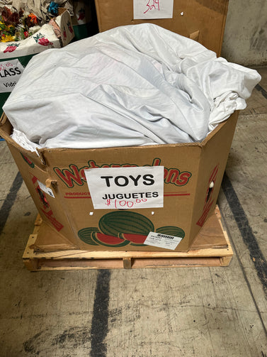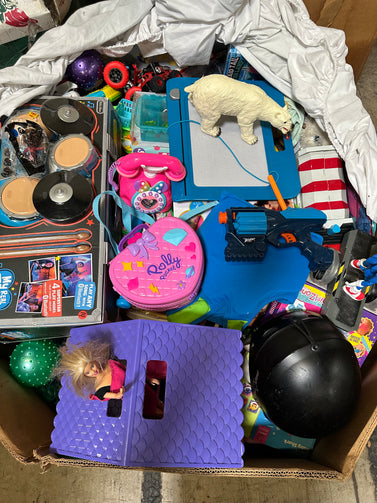 Various large sized toys and small sized toys. Includes sport equipment, pool toys, basketballs, etc. New and used, good condition and no missing pieces. |